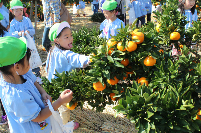 みんなで伊勢原のみかん山へみかん狩りに行った時の様子です。